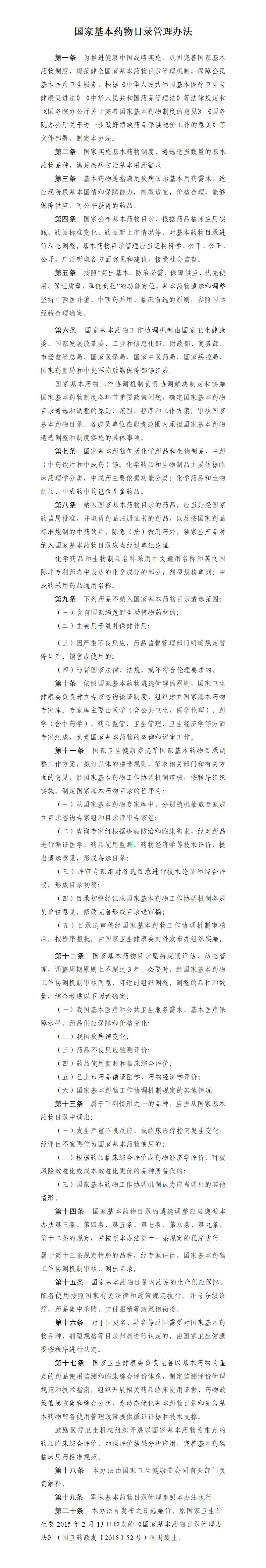 为巩固完善国家基本药物制度,健全国家基本药物目录遴选管理机制,国家卫生健康委、国家发展改革委、工业和信息化部、财政部、商务部、市场监管总局、国家医保局、国家中医药局、国家疾控局、国家药监局和中央军委后勤保障部依照相关法律规定对《国家基本药物目录管理办法》进行了修订。现印发给你们,请遵照执行。