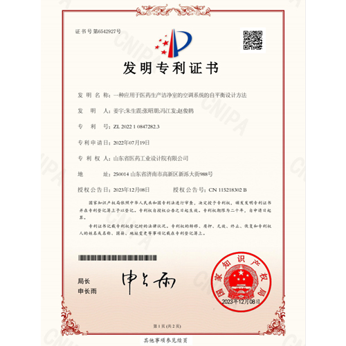 发明名称:一种应用于医药生产洁净室的空调系统的自平衡设计方法