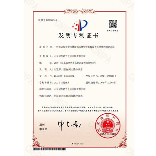 发明专利:一种他达拉非中间体顺式四氢咔啉盐酸盐有关物质的测定方法