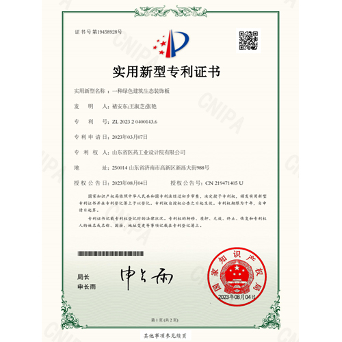 实用新型名称:一种绿色建筑生态装饰板