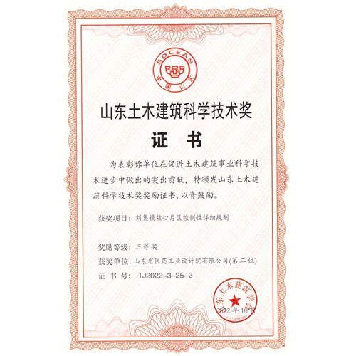 2021年度山东省优秀工程勘察设计成果竞赛其他行业设计项目三等奖