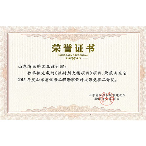 山东省2015年度山东省优秀工程勘察设计成果竞赛二等奖