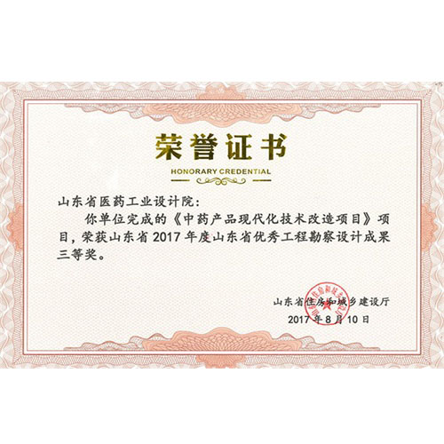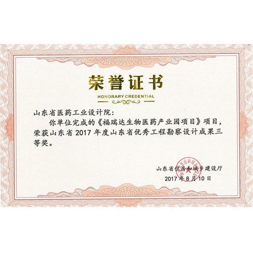 山东省2017年度山东省优秀工程勘察设计成果三等奖