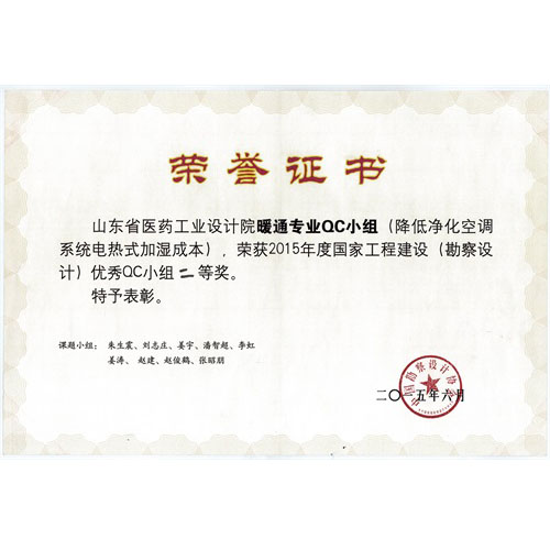 2015年度国家工程建设(勘察设计)优秀QC小组二等奖