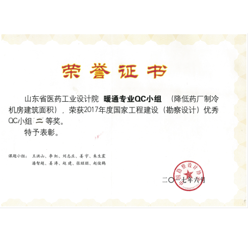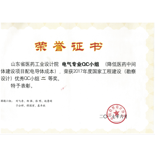 2017年度国家工程建设(勘察设计)优秀QC小组二等奖