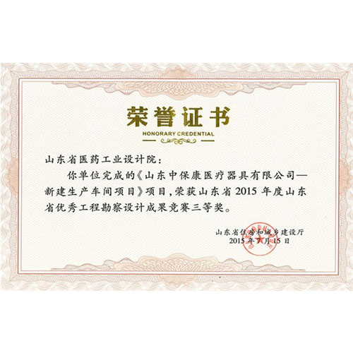山东省2015年度山东省优秀工程勘察设计成果竞赛三等奖