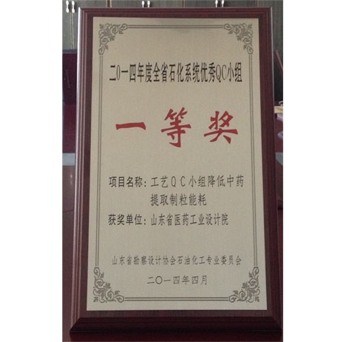 2014年度全省石化系统优秀QC小组一等奖
